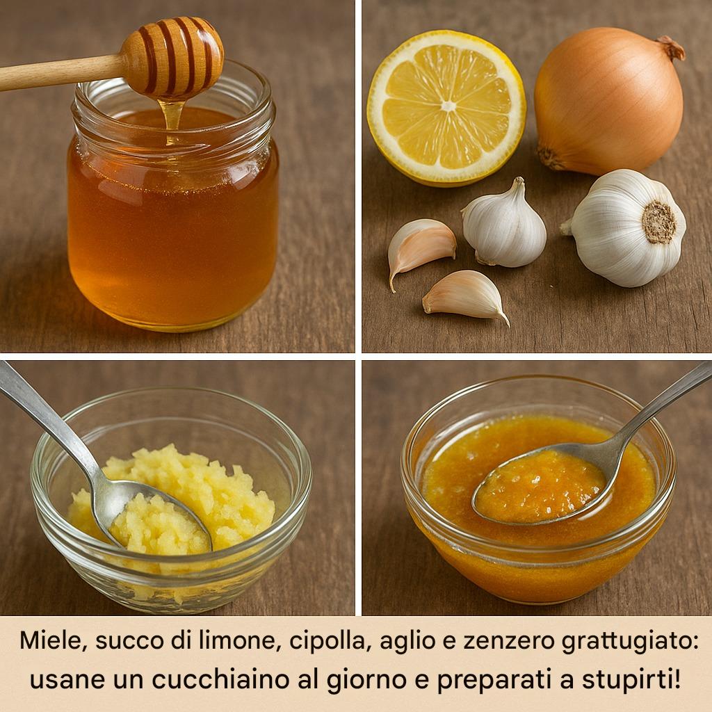 Ciao! Hai mai sentito parlare degli incredibili benefici per la salute di una miscela di miele, succo di limone, cipolla, aglio e zenzero grattugiato? Questi ingredienti naturali sono stati utilizzati per secoli per migliorare la salute generale, rafforzare il sistema immunitario e combattere le infezioni. Che tu voglia proteggerti dai malanni di stagione, lenire il mal di gola o rafforzare il sistema immunitario, questa miscela è un’aggiunta fantastica alla tua routine quotidiana.